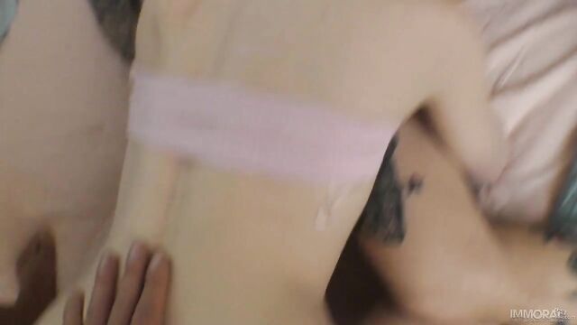 Hot threesome with petite blonde Melody Marks, Matt Bird and Dean Van Damme. Ends with a double cumshot on her juicy bubble butt!