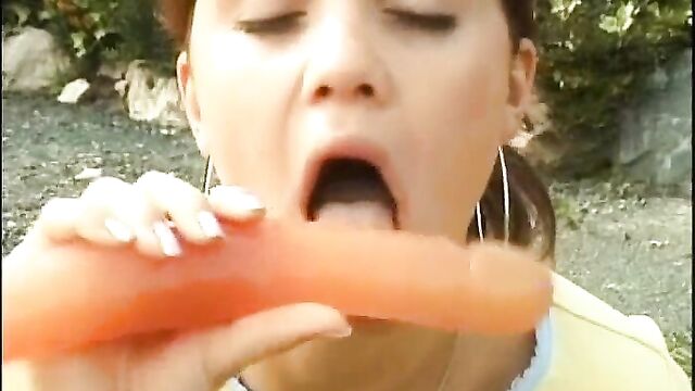 Description:This teeny thinks she’s alone in the backyard and nobody sees her. That’s why she feels no shame at all taking off her panties and fucking herself with a big double-headed dildo. She loves taking it pussy-to-mouth and tasting her own girl juice, but what she doesn’t know is that her girlfriend is watching her from behind the bushes. This other chick has her hand under her pants and fingers herself hard observing this free dildo show in the open.