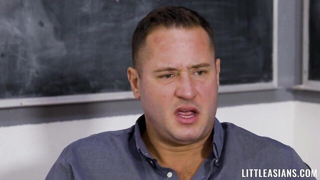 Description:Amber may or may not have a crush on her teacher, Mr. Mountain. He would be lying if he said he didn’t notice how cute she was. And whenever she talks to him, she lingers around, trying to get as much time in with him as possible. But Amber is Danny’s student, and it wouldn’t be appropriate to make a move on her. Still, the angel and the devil on Danny’s shoulders are at war. The angel is virtious, but the devil is fun and enticing. Ultimately, Danny decides he isn’t going to risk messing around with Amber, but that doesn’t mean he can’t let his imagination wander and fuck around with his devilish desires. Devil Amber sucks Dann’y cock and struggles to get it all in her mouth. He’s a big man, after all, and Amber is just an innocent petite Asian babe. Danny can tell Amber still wants to show him how bad she can be. She slobers all over his cock and balls before giving up her pussy. The naughty devil chick rides Danny’s cock, letting him get deep inside of her. They shift around and fuck in all sorts of positions before Danny cums hard on her face.