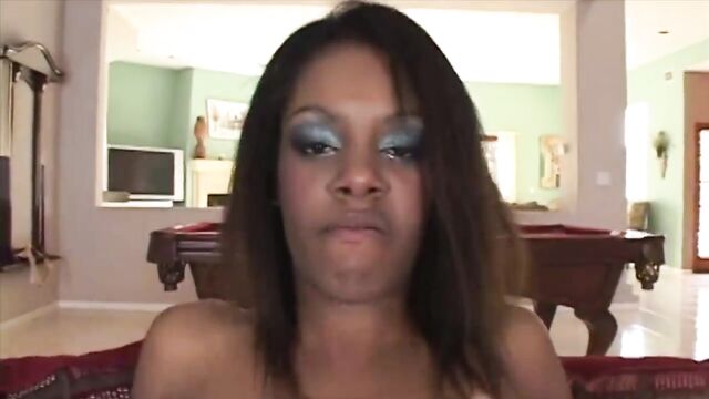 Chocolate beauty in a hard fuck on the couch with a creampie at the end