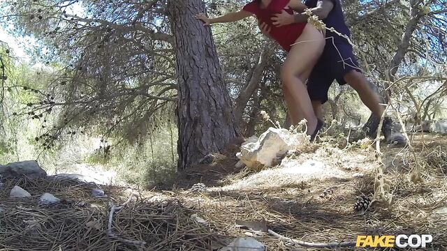 Description:You have to forgive me for mistakenly thinking this hot Spanish smokeshow Pamela Sanchez standing by the side of the road was a prostitute. What a pleasant surprise to find out within minutes that even if she wasn't a working girl, Pamela still fucks like a whore. After chatting with her for a few minutes, she told me her car was broken down, and she needed some help from a big strong policeman such as myself. I was hoping for a look at her big tits, but Pamela upped the stakes by proposing a blowjob right out of the gate. I drove over to her parked car, watching her big thick ass jiggling in that red dress while she walked off. Right there in the open, Pamela sucked my hard cock, blowing mne like a naughty girl with no worries about being spotted by any passing strangers. She didn't mind my camera rolling a POV sex tape while we fucked, and opened her mouth wide while I striped her face with jizz right there in the woods!