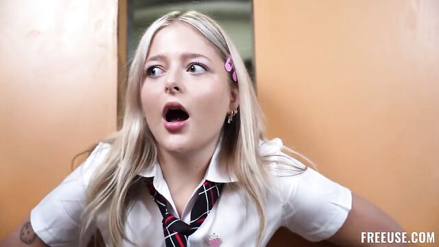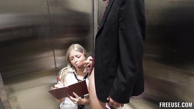 Description:I’m going to be late! Trapped in an elevator on exam day - what the fuck! I tried to wiggle my way through the doors, but I just got stuck, leaving my juicy little booty perfectly exposed for the guy in the elevator to play with. Who cares! I can’t focus on him stuffing my pink, dripping pussy, using me to his cock’s content - I’ve got to focus on my test. Turns out the guy in the elevator is super helpful. While he uses my pussy and mouth as much as he wants, he also helps me keep calm and quizzes me!