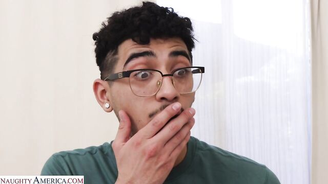 Description:Diego received a package meant for his neighbor, and friend's mom, Tiffani Madison. He's a little curious about what it is so he opens it up and turns out that Tiffani ordered a nice big dildo. Diego tries to repackage it and drops it off at Tiffani's house, but Tiffani notices the package looks opened. Eventually Diego comes clean and lets Tiffani know that he did open the package because he finds Tiffani hot and was curious as to what was inside. Tiffani is flattered by Diego's confession and has a change of heart. She decides to let Diego watch her play with her new toy before replacing it with Diego's dick!