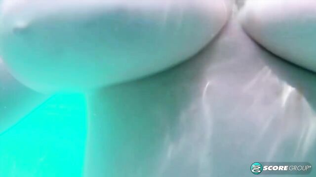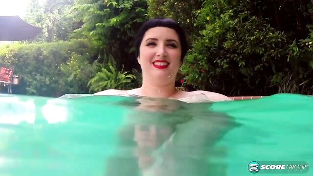 Description:At poolside, Jenna Valentine is killing a tiny bikini which is little more than a string with some doily-size pieces of cloth. Jenna says she doesn't own bikinis because she can't find any that fit her. And she rarely goes to the beach anyway. That makes us sad. The not-fitting part is the fun part. Seeing Jenna overpower this bikini can overload a boob-man's little gray cells. That makes us happy. But you must love Jenna for more than her huge titties and pretty face and curvaceous rack. You must also love Jenna for being Jenna, which is what we do. As Jenna said, "I would rather have a guy come up to me and tell me I am beautiful or even pretty than for him to tell me that I have big boobs." After a few minutes of a mixed-topic chat with the director about bikinis, dolphins, her mom's swimming pool, her breast growth spurt (now HH-cups) her tattoos and dating, Jenna peels off the suit and goes for a skinny dip. This is the part when the underwater footage is cut in as she wades in the pool. That frogman training was really worth the tuition fees. Some sculptor somewhere should create a statue in Jenna's likeness that men could pray to. We promised not to call Jenna's skin "creamy" and we'll stand by that promise. But it should be okay to call Jenna a work of living art.