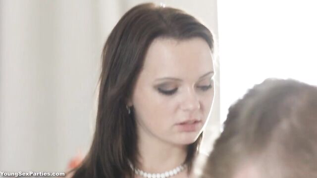 Descrição: When two playful coeds in black and white stockings hook up for some hot lesbian fun you know Edward won’t miss a chance to join the action. This guy is so fond of threesome home parties cuz he loves nothing more than fucking two bisexual kittens at the same time and watching them kiss as they ride his face and cock to orgasm.